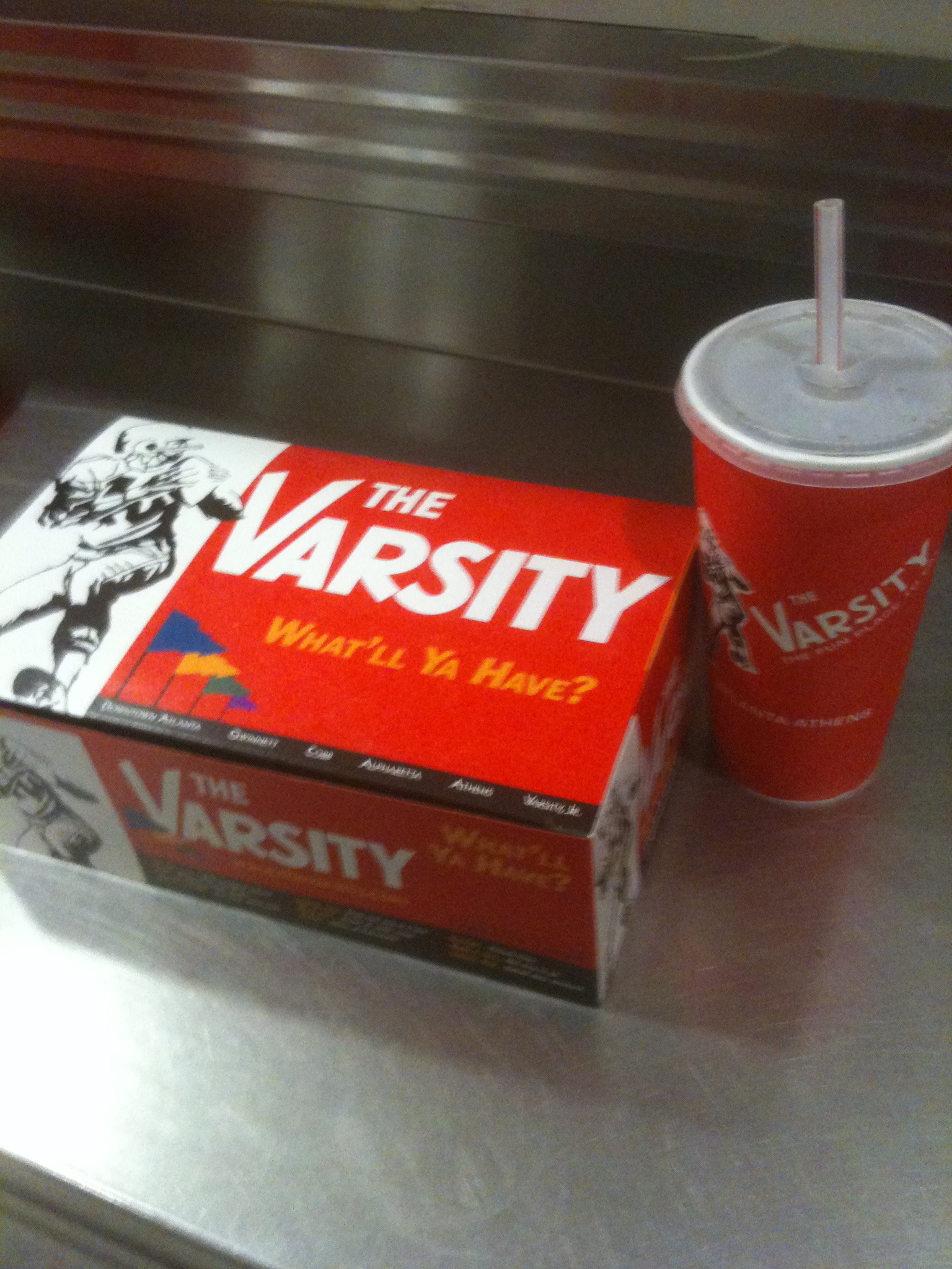 I did have a several things going for me. Saturday nights are light travel periods – I was able to breeze through security and customs incredibly fast. I was able to OJ through the airport when I needed since I had no luggage. The Varsity is normally packed but since hordes of fans were still escaping the football game I was able to go straight to the counter. Everything worked out (any other day of the week or year, this could have been a big fail) and in the process I got my groove back via a little culinary adventure travel.