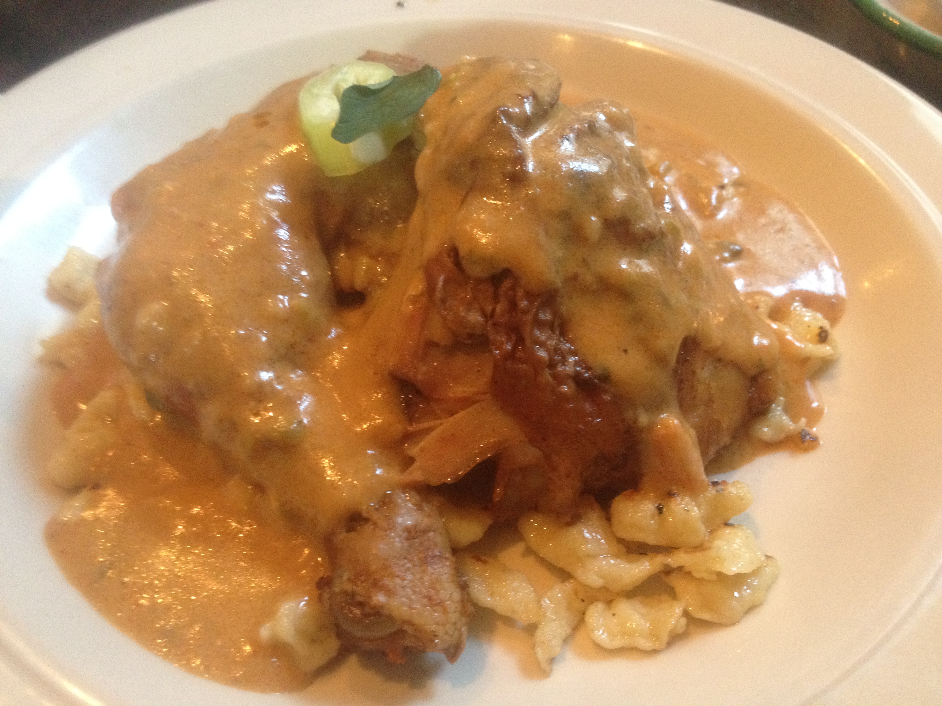 Chicken Paprikash with dumplings (The dumplings were really good in a spatzlesque manner supported by the chicken, tender to the bone and full of flavor)