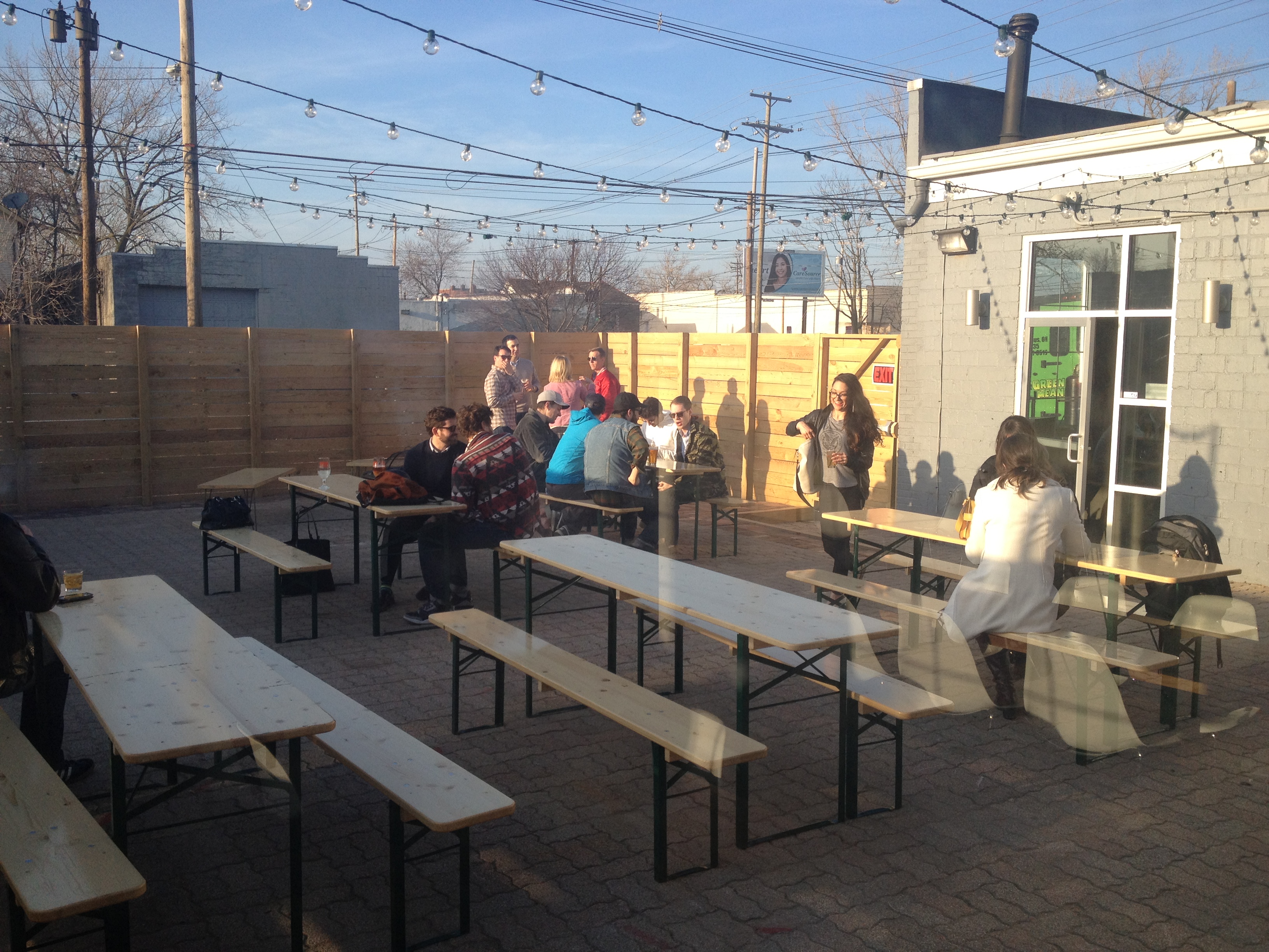 The large outdoor patio has plenty of tables, quick access to the inside as well as to the food trucks in the parking lot and a fire ring to allow to space to continue to be cozy in the frigid late fall and wet early spring of Columbus.