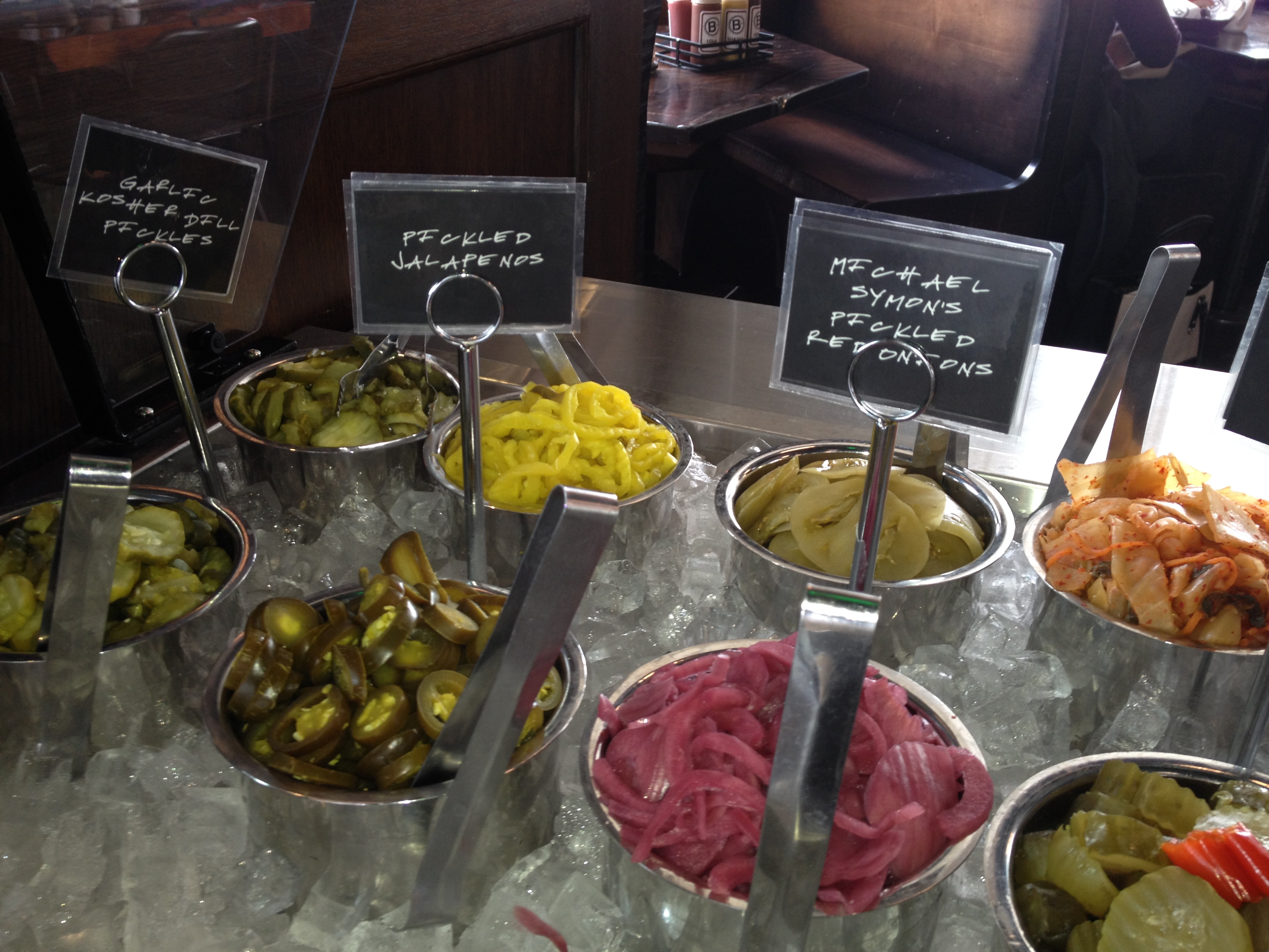 Speaking of pickled, Michael Symon has a long fascination with pickling things (as do I) so I was happy to see B Spot features a self-serve pickle bar with several types of pickles and pickled vegetables.