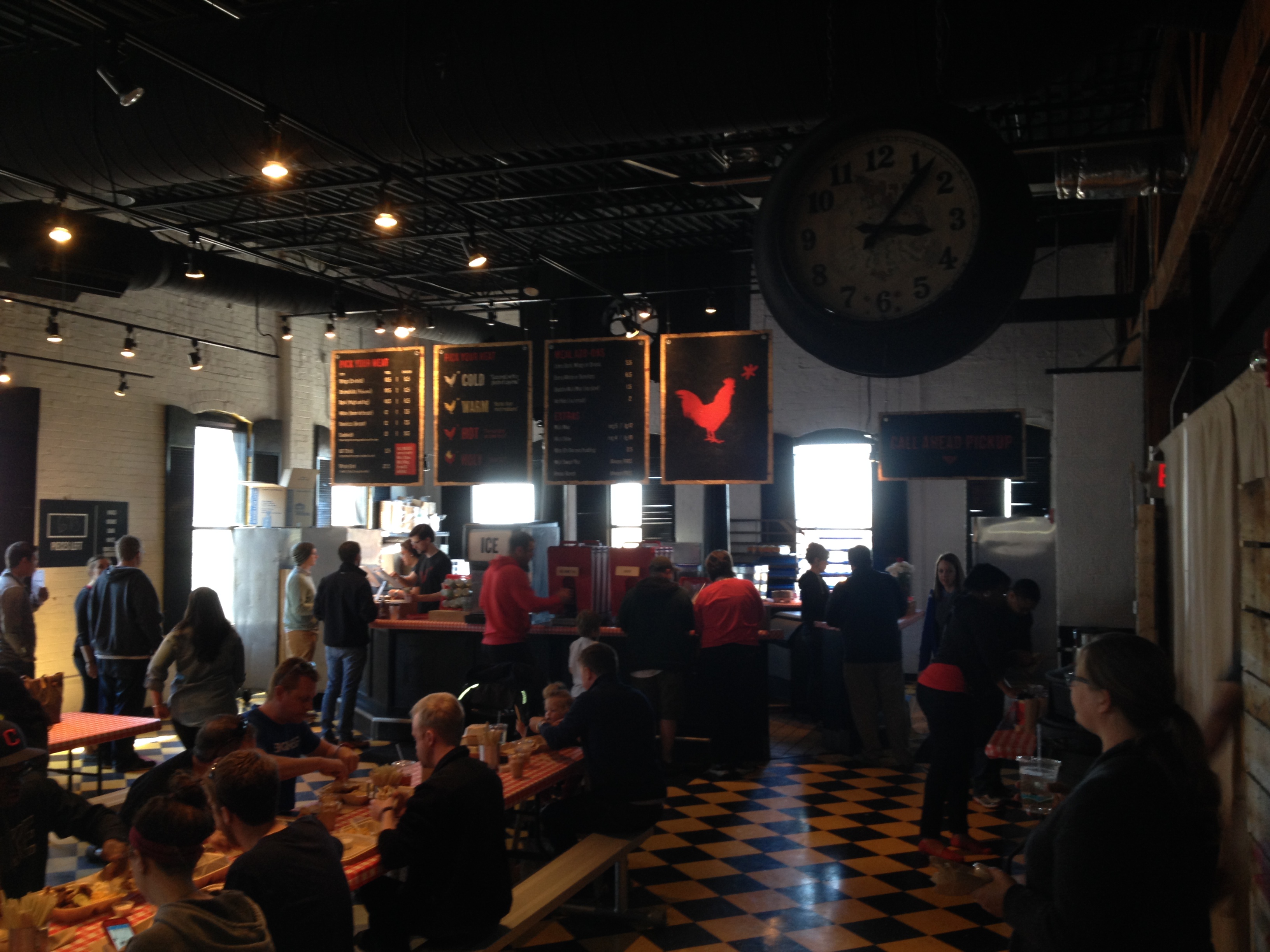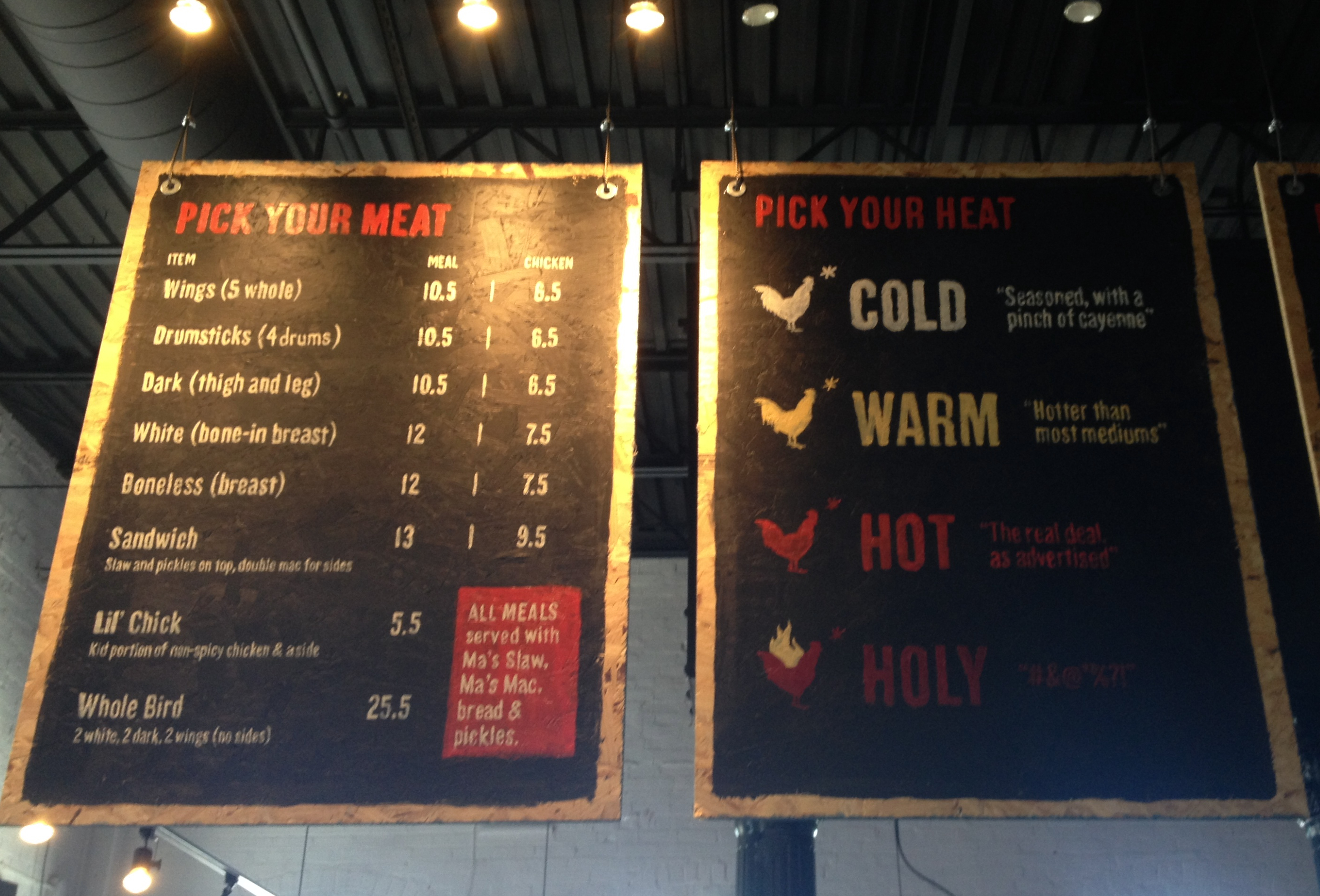 Well, it took a while, but I finally caught up with what all of the cool kids have been talking about, Hot Chicken Take Over. It started out as a pop up and then popped over to the North Market. Things started hot and have gotten hotter with long lines and chicken selling hotter than hot cakes. The origins go to Nashville where hot chicken has been a thing for generations. (Authors note: I had hot chicken for the first time with Jane and Michael Stern of Roadfood fame back in 2007). The concept is simple so I will walk you through it with photos.