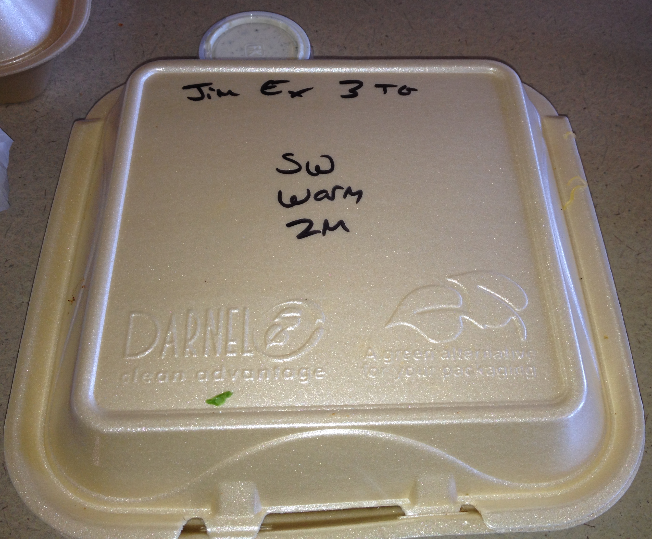 Get your chicken (check to make sure you have the right box, it will have your name and order written on it).