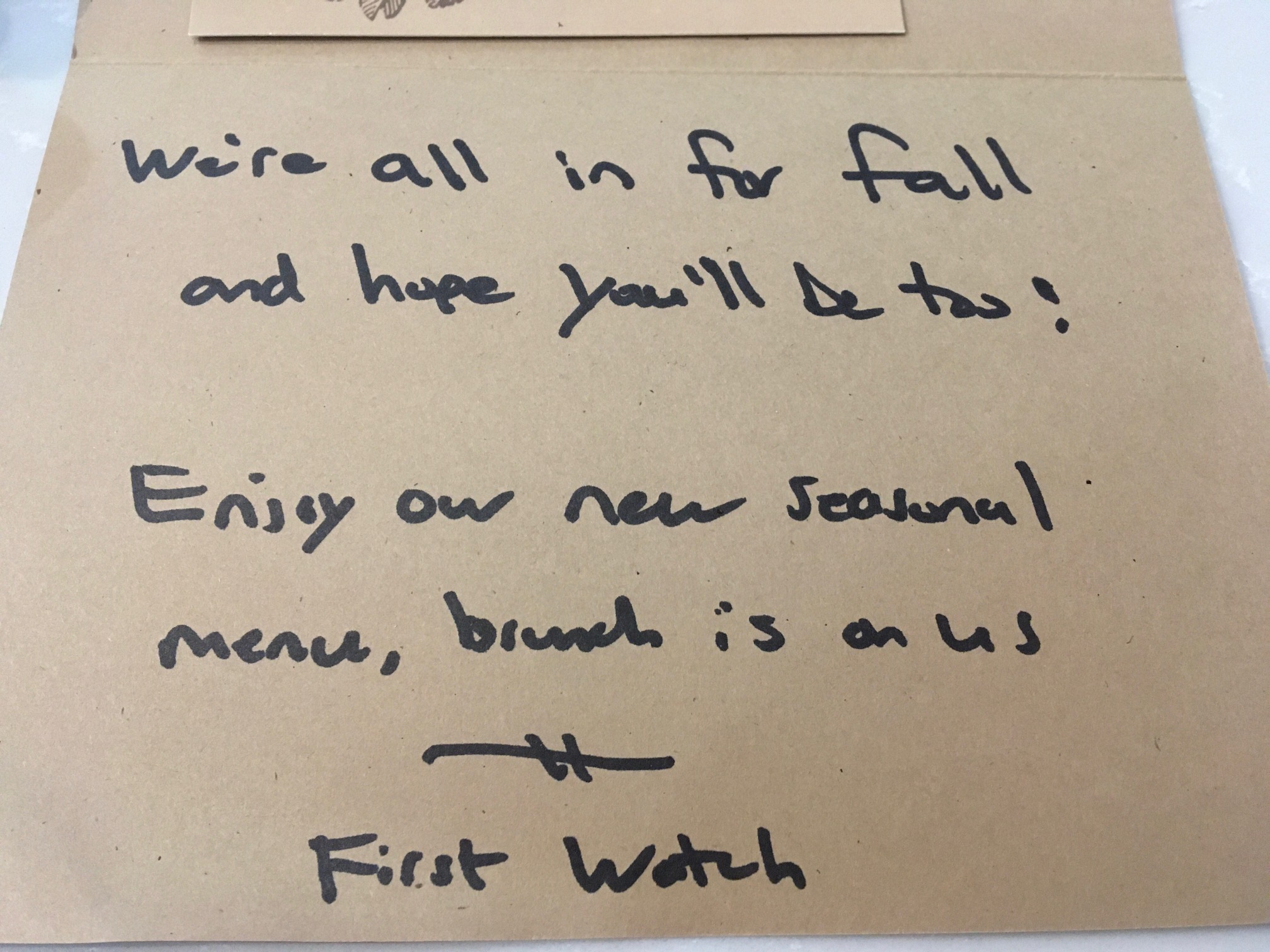 Thank you for the invitation First Watch, I’m happy to come back again in the winter, and the spring, and the summer.