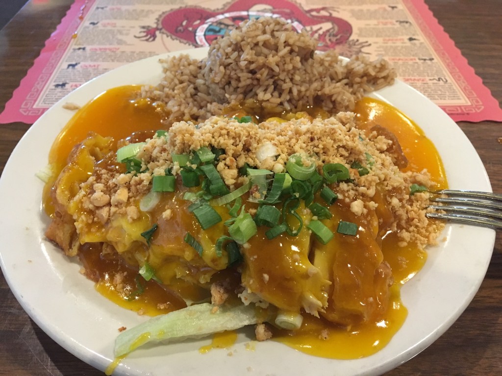 Many moons ago, I came across this interesting article about the origination of Wor Sue Gai / War Su Gai in Columbus. The claim seems credible with a strong probability that the dish started at Far East Restaurant in Bexley sometime in the 1920’s. Two of our oldest Chinese restaurants in town – Wings (1970) and Ding Ho (1956) have connections to that restaurant. The dish is simple – wok fried chicken topped with chopped almonds or peanuts depending on the restaurant and era, covered with gravy and served on a bed of lettuce. My memories of Columbus Chinese food of the 20th century recall this dish vividly anywhere we dined. Other locales call this Almond Boneless Chicken as described in an article on Eater. There are differences in how this dish is presented, especially in how the gravy is prepared throughout Columbus and elsewhere but the core of the dish remains the same. As I was reading through this research I realized I have never dined at Ding Ho and I figured I should fix that.