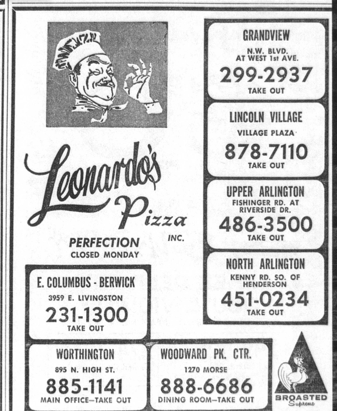 Leonardo’s Pizza was the first pizzeria to go to up to 9 locations before anyone else. It was a training ground for several pizzerias we enjoy today. I tried, and tried, and tried to get an interview and could not make it happen. I found some information using other sources including auditors records but I did not get the story I wanted. I think that is loss for us all.