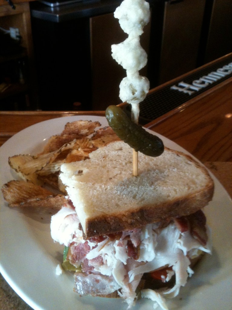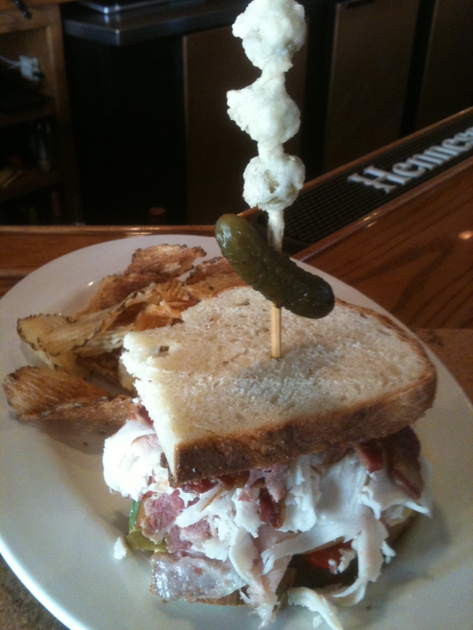 The Verdict? Reread the menu above. The size of the description matches the quality and satifisfaction of the Deepwood Dagwood. What a good sandwich! It was easily the winner of the two choices. Exceptional cuts of meat, good flavor. The chips were incredibly good with some house made ketchup I reallocated from the French Fries. Hard to see in the photograph but the mini battered and fried olives of the skewer were really well executed. I am sure they elicit a faint, subdued smile in the backroom. If you have to choose go with the Dagwood.