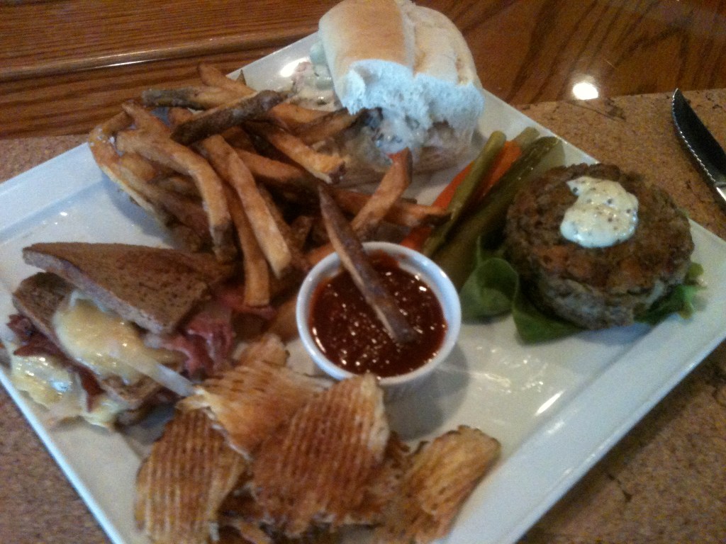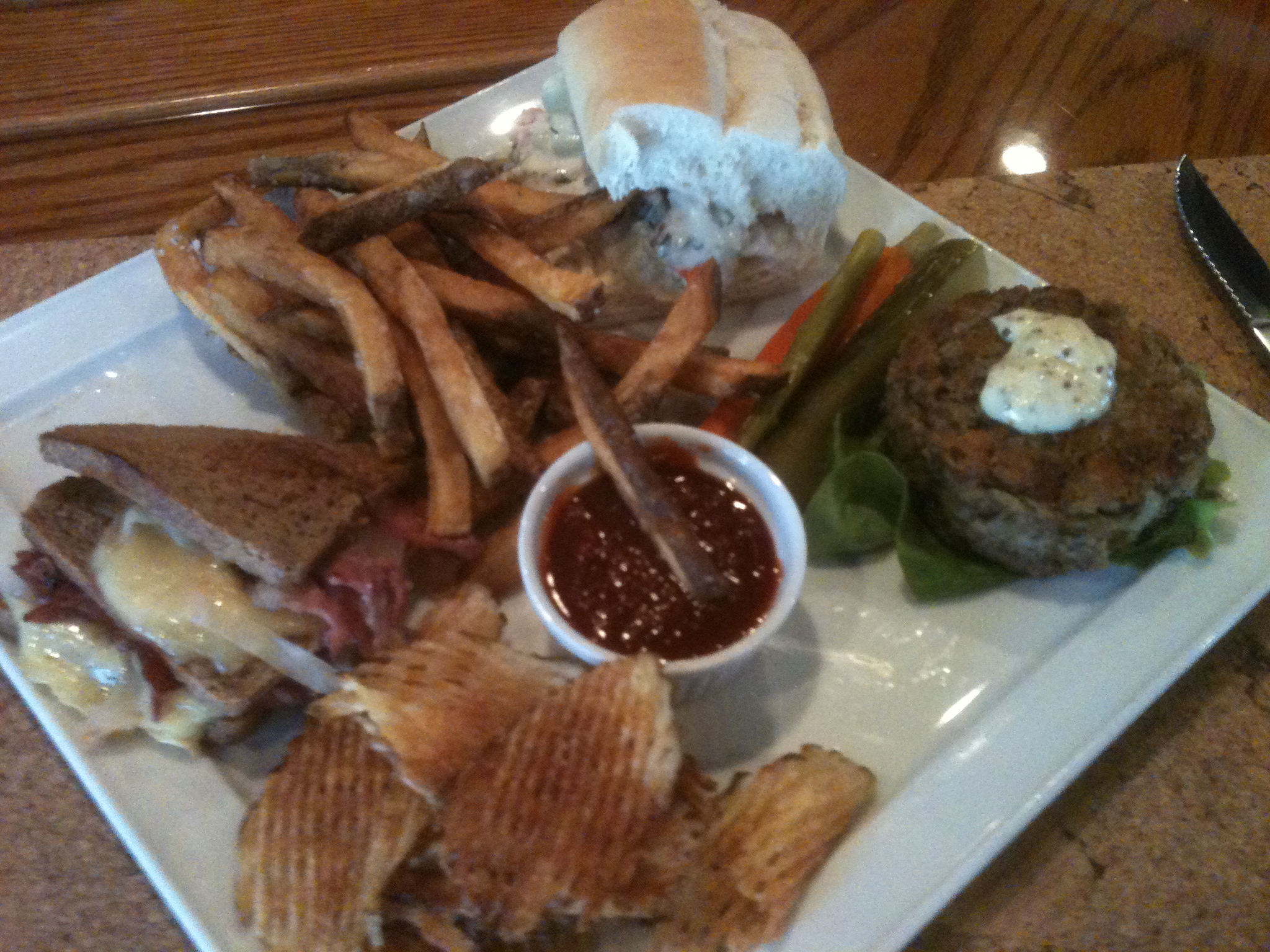 New England Lobster Roll with Hand Cut-Fries, House-Made Pastrami with Potato Chips, Lentil Patty with Deepwood Tavern Pickled Vegetables
