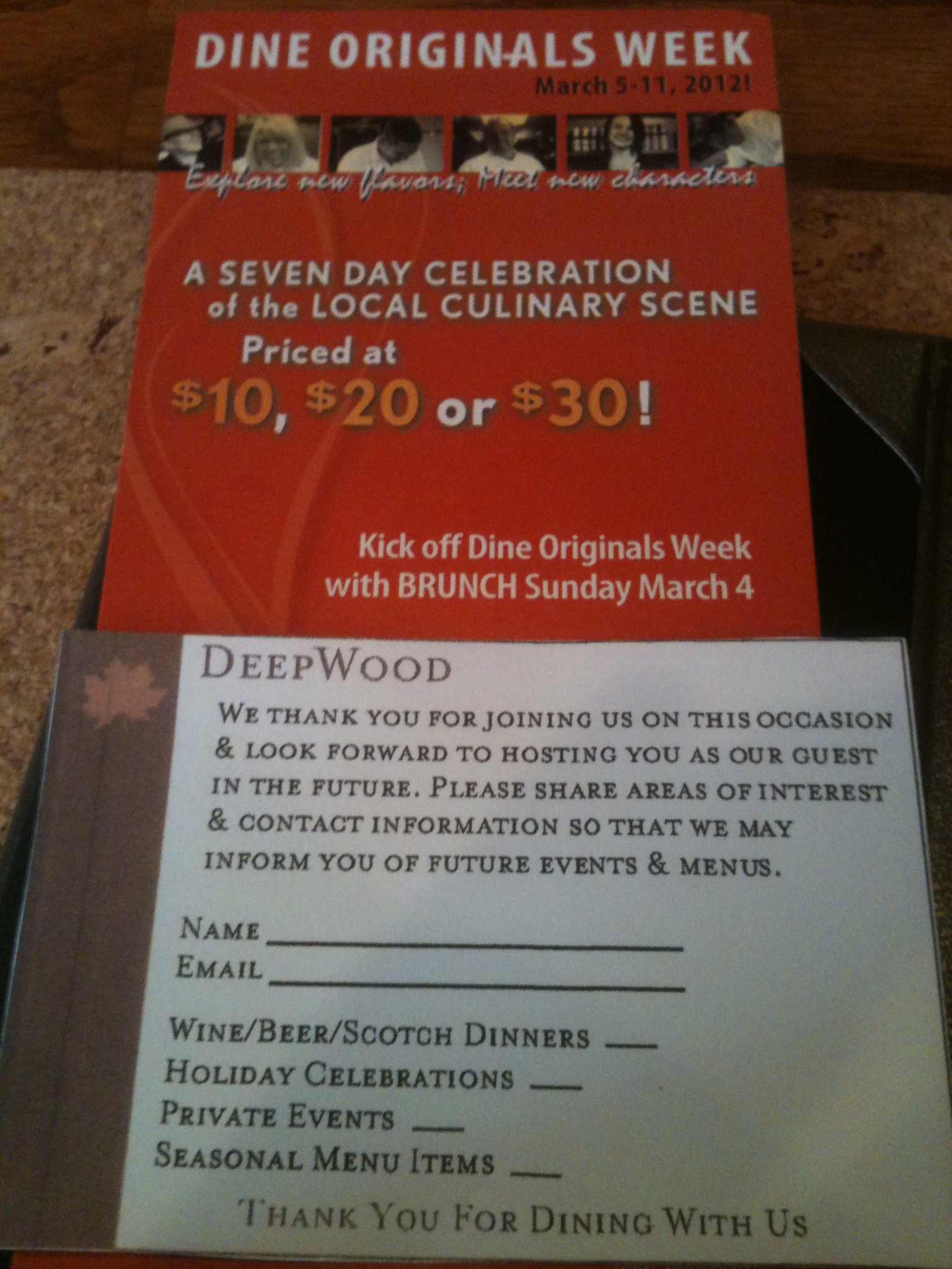 If you feel a little cheated after reading this, knowing that you will not have such an experience for this Dine Originals Week, then I give you this task. Go to Deepwood this month and tell the staff you would like them to serve lunch on a Saturday for the next Dine Originals Week.