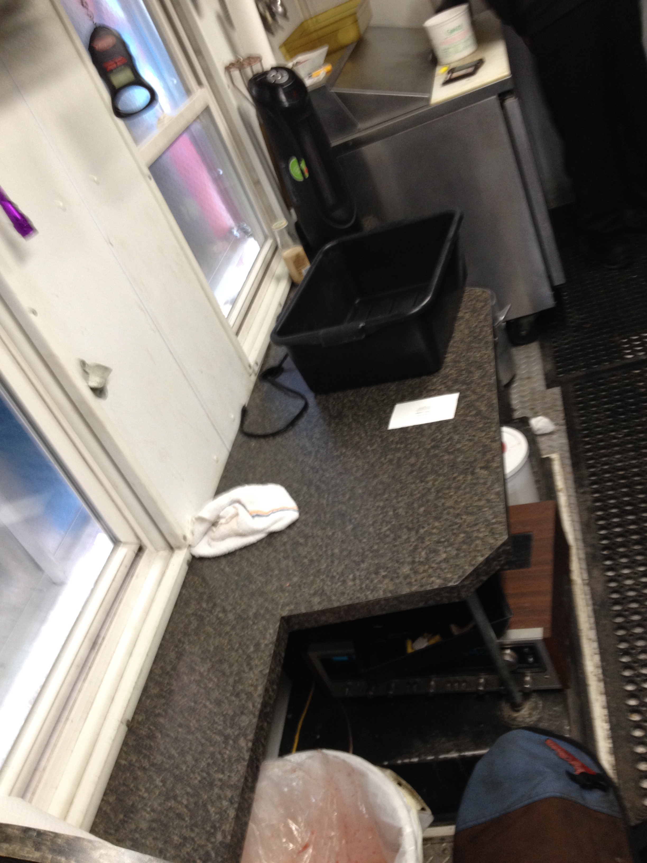 One night the interior temperature dropped below 20 and Dan could see ice on some of his inside equipment. Is he tucked under layers of blankets and buried in expensive Arctic explorer style parkas and snow pants? No way. Only one thing protects him from the elements – Carhartt. So next time you grab something to go from Dan or complain about the walk from your office to your car, think about the journey your sandwich made to get to your belly and throw an extra dollar in the tip jar. Dan earned it.