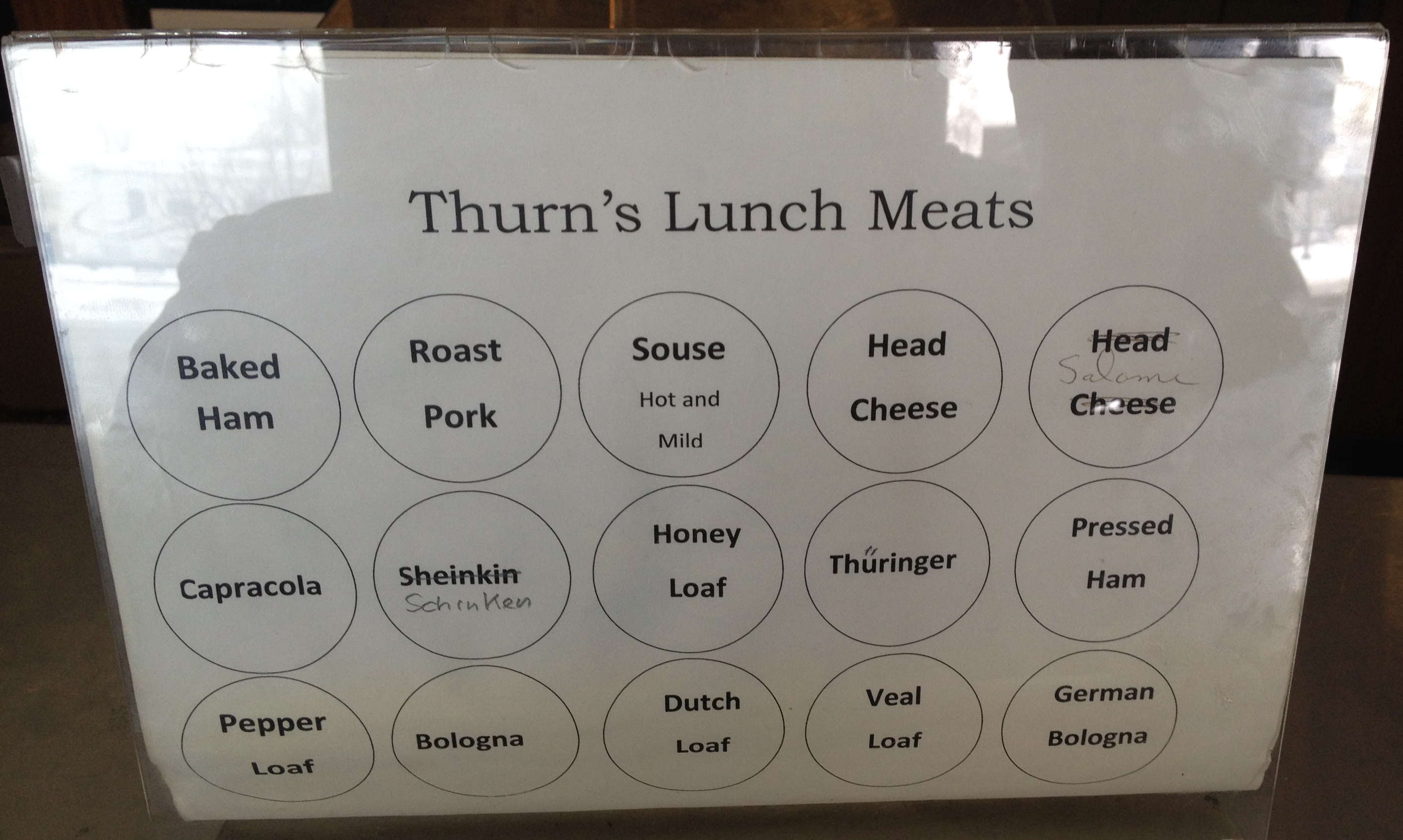 So follow a pattern I have done during springtime the past few years. Pop into Thurn’s on a Thursday, Friday and Saturday. Buy a 1/4 pound of two to four meats each time and keep trying them out between bread until you find your favorites. Although I like them all, my favorites are on the bottom row of their chart.