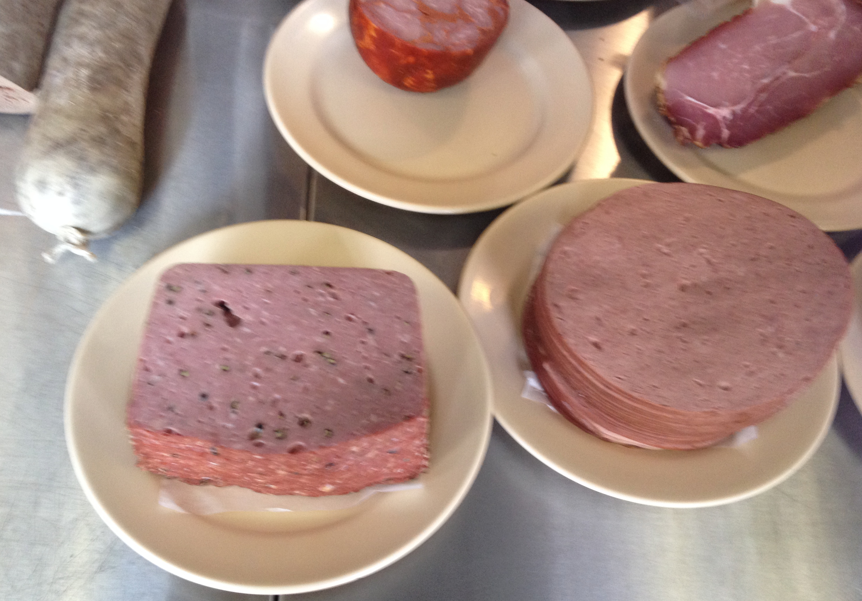 I’ve written about Thurn’s before but I have not done justice to one of several things they excel at – offering a wide assortment of freshly made cold cuts and lunch meats. Choices include but are not limited to: baked ham, roast pork, hot and mild souse (head cheese / terrine), head cheese, salami, capricola, Schinken (dry cured ham), honey loaf, thuringer (sausage), pressed ham, pepper loaf, bolonga, Dutch Loaf, veal loaf and German Bolonga. As a side note, there are some other sandwich friendly encased meats and spreads – most notably the best ham salad I have ever tried. The Thurn’s know meat, they have been butchering and processing meat for over 120 years so that forms a strong foundation. The freshness of the meats is a major bonus – something that we rarely experience anywhere with overly processed and transported meats encased in plastic packaging. And variety – well look at what I listed above, most of you have never heard of several of these before.