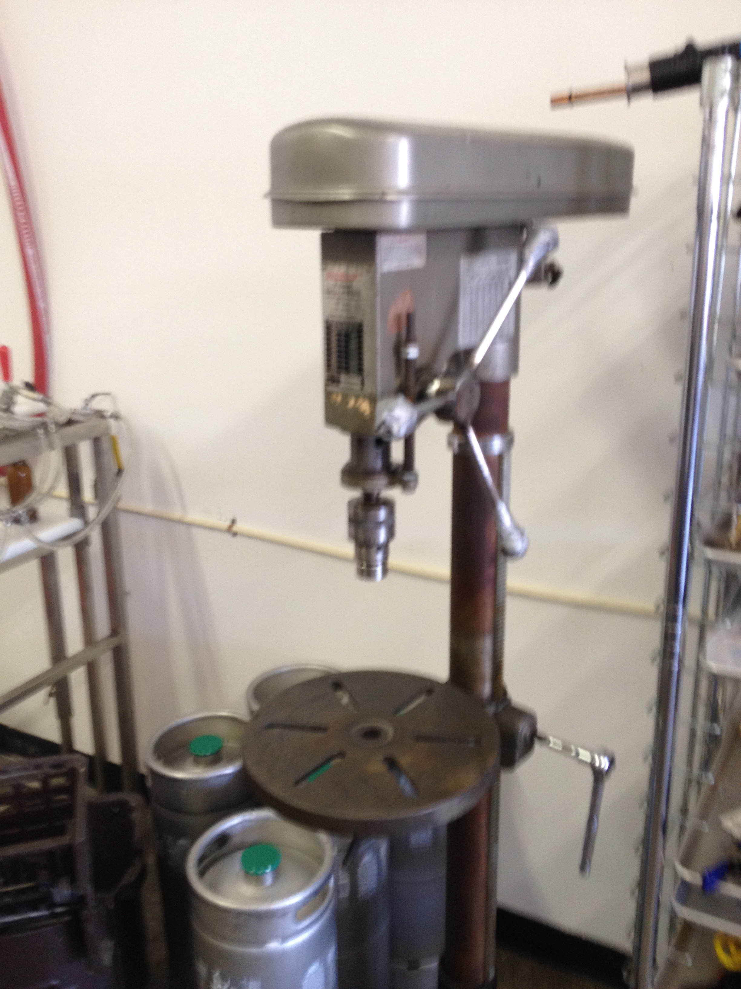 Others things I could do in the future include bottling and capping, using the equipment you see below. The capper is pretty amazing, it was made out of a broken drill press Peter picked up for $50 (worth more than that by weight alone at a scrap yard) and mounted with a special capping mold he found on the internet. The MacGuyvered tool works like a charm. In fact much of what is in the cider house is customer made, crafted, reverse engineered and conjured up which is the nature of any small start up business. Mad Moon has a lot a stories to share and these are just a few of them. (FYI: the next Columbus Brew Adventures Tour to Mad Moon is August 30th).