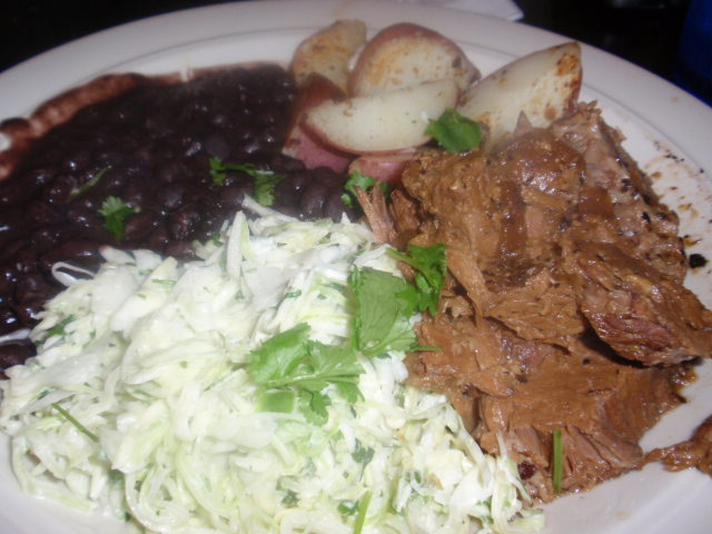 The winner of the dinner entrees selected was the beef brisket (with black beans, redskin potatoes and jalapeno slaw). The brisket fell apart with very light pressure from my fork. It has a complimentary mix of flavors in the broth to spice things up. My dining companion is not a fan of the jalapeno but she found the proportion of pepper to slaw to be perfect balance of heat and cool.