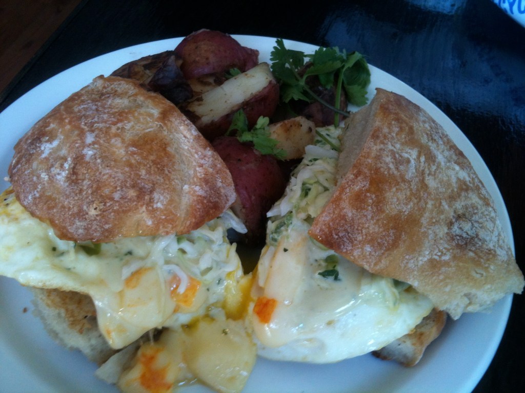 All the breads are made in-house at Explorers Club. The bread is fresh, hearty and serves as a great base for many of the dishes or a compliment for dipping sauces on the side. One their best uses of bread is the Fried Egg sandwich served on Ciabatta with Muenster Cheese and Jalapeno slaw with redskin potatoes on the side. This is a bit messy to eat but who cares, it might be the best breakfast sandwich (non-traditional category) in town.