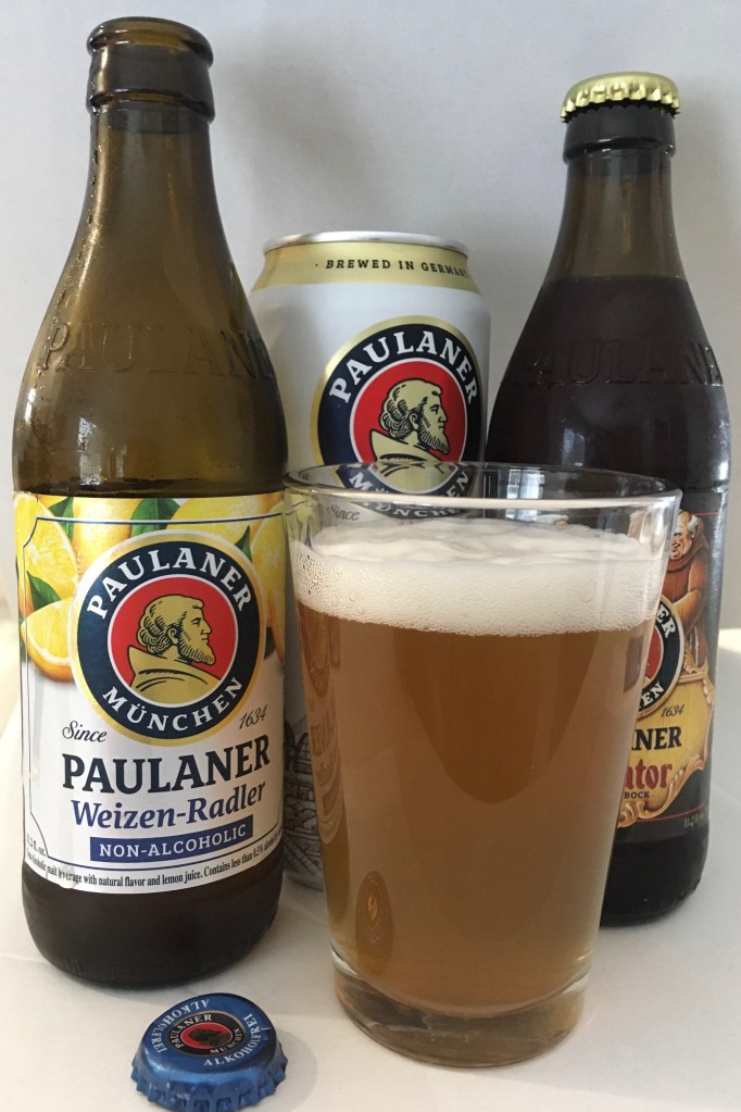 I started with the Paulaner Weizen-Radler (Non-Alcoholic). This is a Hefe-Weizen with the alcohol removed (well most of it, less than .05% ABV (alcohol by volume) blended with lemon juice. Paulaner brewed the first non alcoholic Weissbiers in the world and the radler originated in Germany, so I had high expectations for this non alcoholic malt beverage. I was not disappointed. This transported me to sitting in a beirgarten in Munich without the threat of a hangover or the monotony of a layover. The Weisen-Radler was a pleasure to consume, as much as I loved it, I did share some with my wife. She liked her sample and was disappointed we did not have more.