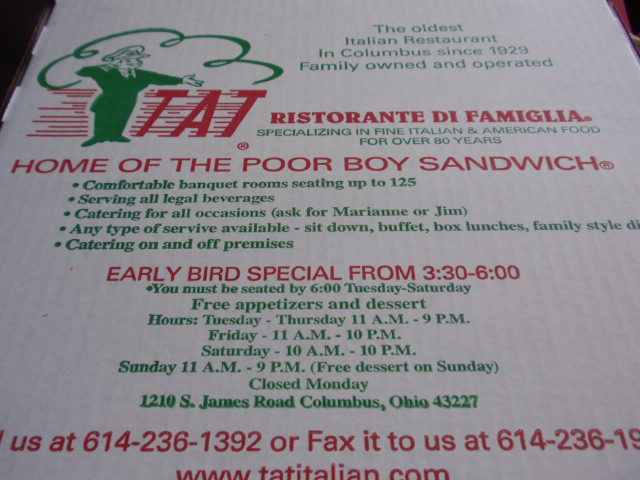 “Progress” in the form of new highways, cut up the Flytown neighborhood in the early 1950’s and forced TAT to move. Pete and Philomena opened the new location on the growing east side at 3280 E. Main St at South Hampton Road (it remained there until 1965). The couple continued to serve food that reflected Pete’s Sicilian (Ficara) roots and the recipes Philomena brought from Naples…and of course pizza. In 1955 (or 1954), Jimmy Corrova and his wife, Dolores, opened a second TAT at East Broad Street and James Road. In 1962 the family added a location at Livingston Avenue and Beechwood Road. This was followed by a pizza focused location on the west side, the TAT Pizza Carry Out at 3858 Sullivant Ave (which became Minelli’s Restaurant & Pizza Carry Out in 1967). During the brief tenure as a TAT, the west side location was very busy with Jimmy Corrova recalling they used “five to six delivery wagons and sold 600 pizzas per night on Friday and Saturday”. After the death of patriarch Pete, followed by Jimmy having a heart attack, the family decided to merge the two remaining east side TAT’s in 1980 which remains TAT’s location today, 1210 South James Road (at Livingston Avenue).