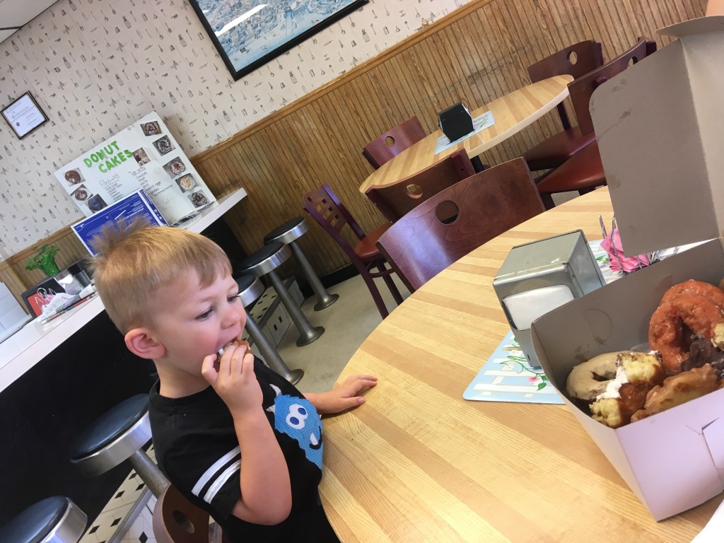 CMH Griffin, sampled a small piece of a cake donut with sprinkles and a small piece of a cherry donut. These were consumed with significant gusto. Over the course of the next 24 hours, CMH Griffin consumed about 1.5 donuts. Considering we have been experimenting with a no gluten diet and low processed sugar diet for him, this was a poor decision on my part. CMH Spouse was quick to point this out with her trademark sarcastic disdain. This was warranted because CMH Griffin was wound up for the rest of the evening so neither of us slept more than a few hours.